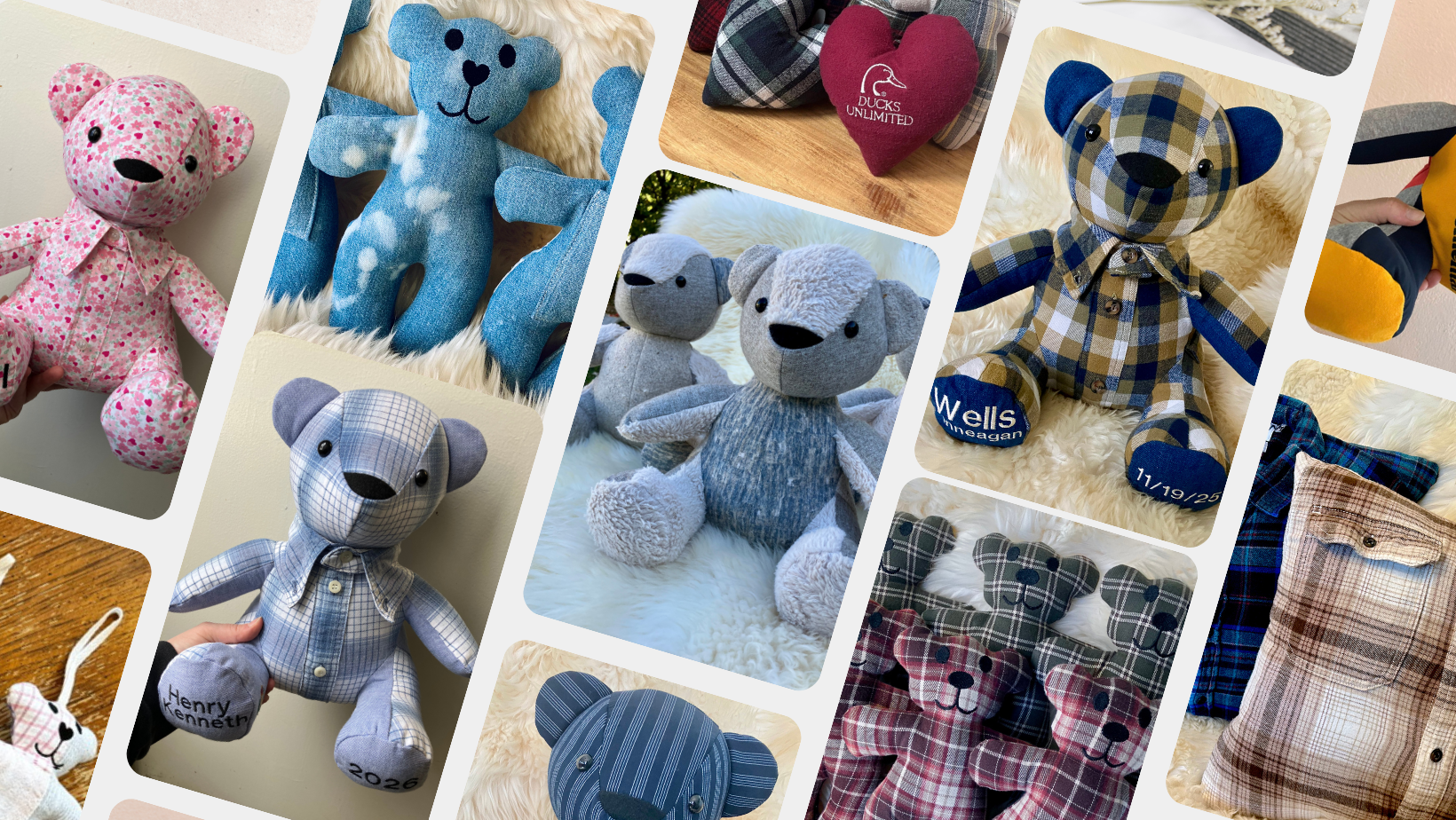 Handmade memory bears, pillows, ornaments, and more crafted from your meaningful fabrics.